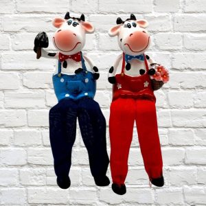 Sitters – Cows Shelf Sitters Red and Blue Clothes – Polyresin 2 Assorted