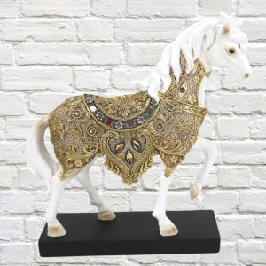 Vancouva Horse with Golden Jewelled Blanket Polyresin 22×24 cm