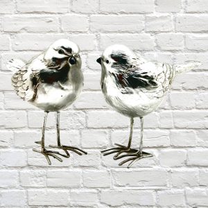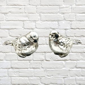 Torbina Birds Silver Polyresin 12x11cm 2 assorted