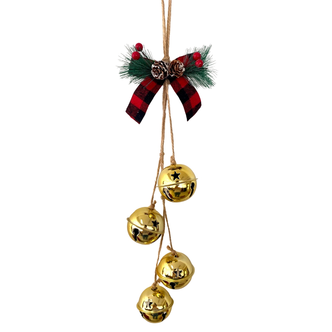 Bells Gold 7cm diameter with Cones and Berries – 4 bells in Garland 50cm long