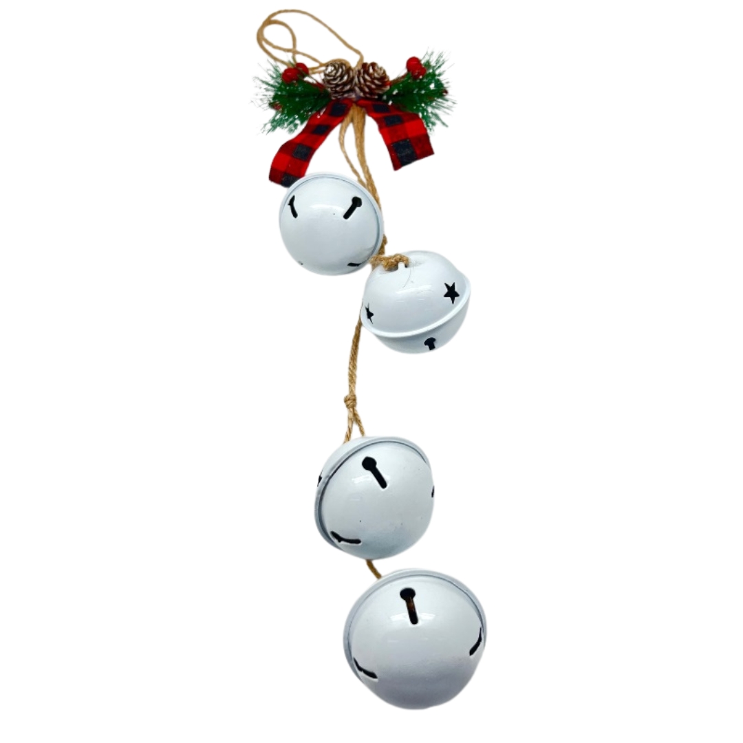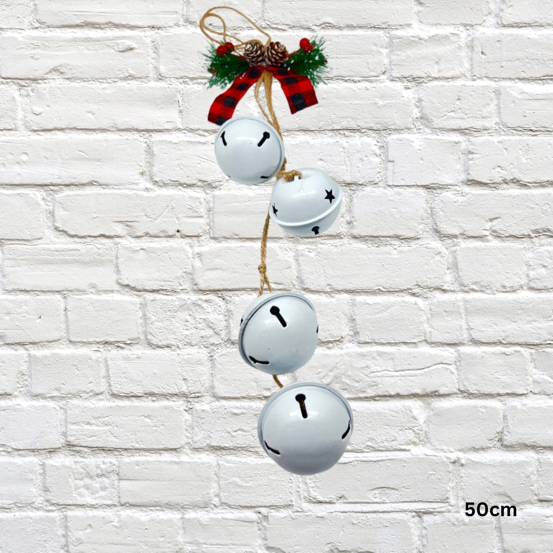 Bells White 7cm diameter with Cones and Berries – 4 bells in Garland 50cm long