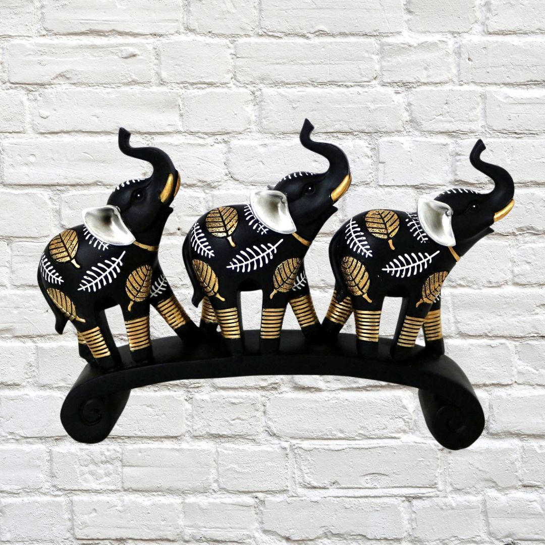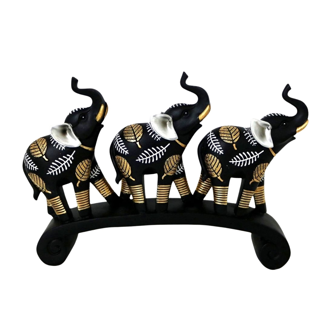 Mintrelle Black and Gold Elephant Trio Polyresin 27x18cm