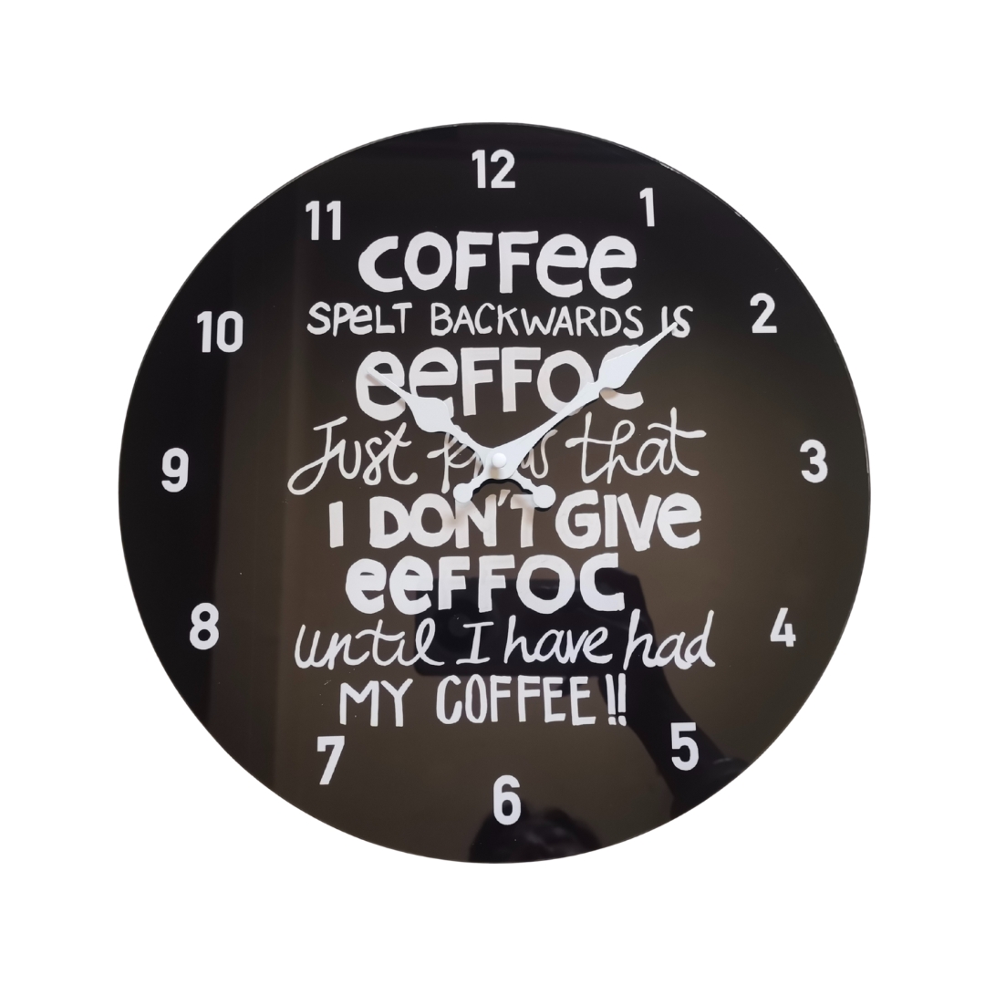 Posh Clock – Eeffoc backwards (Glass) 30cm