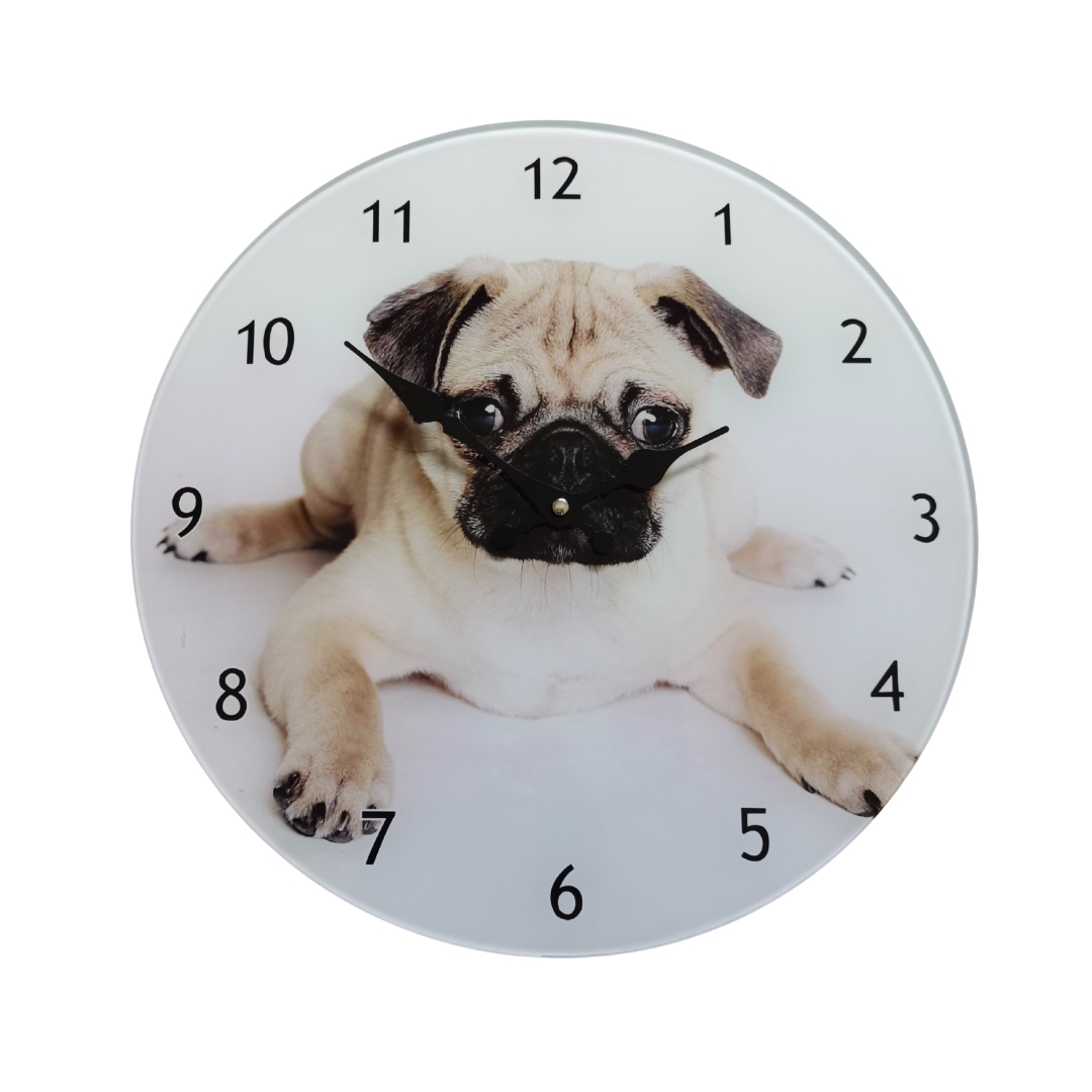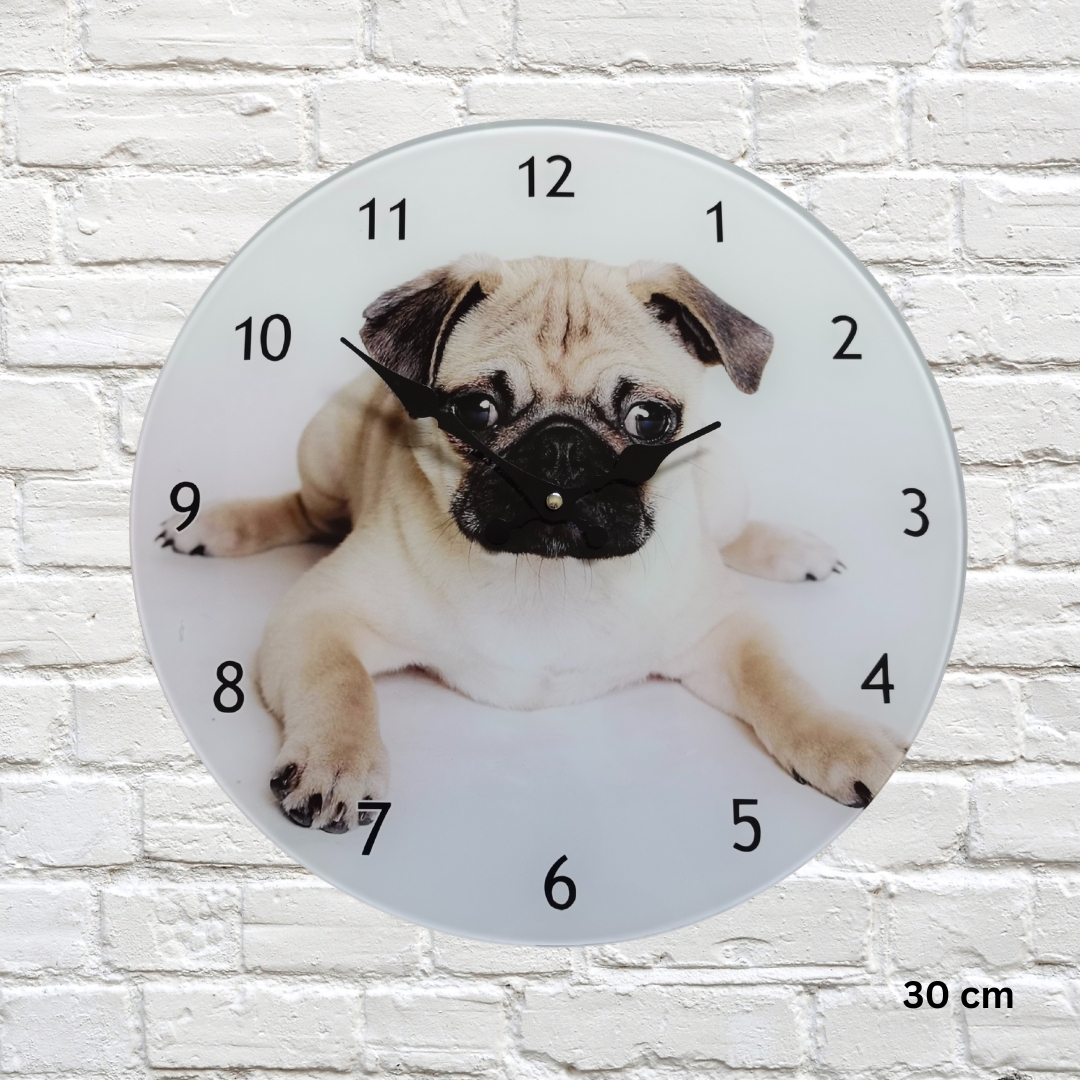 Posh Clock – Pug (Glass) 30cm