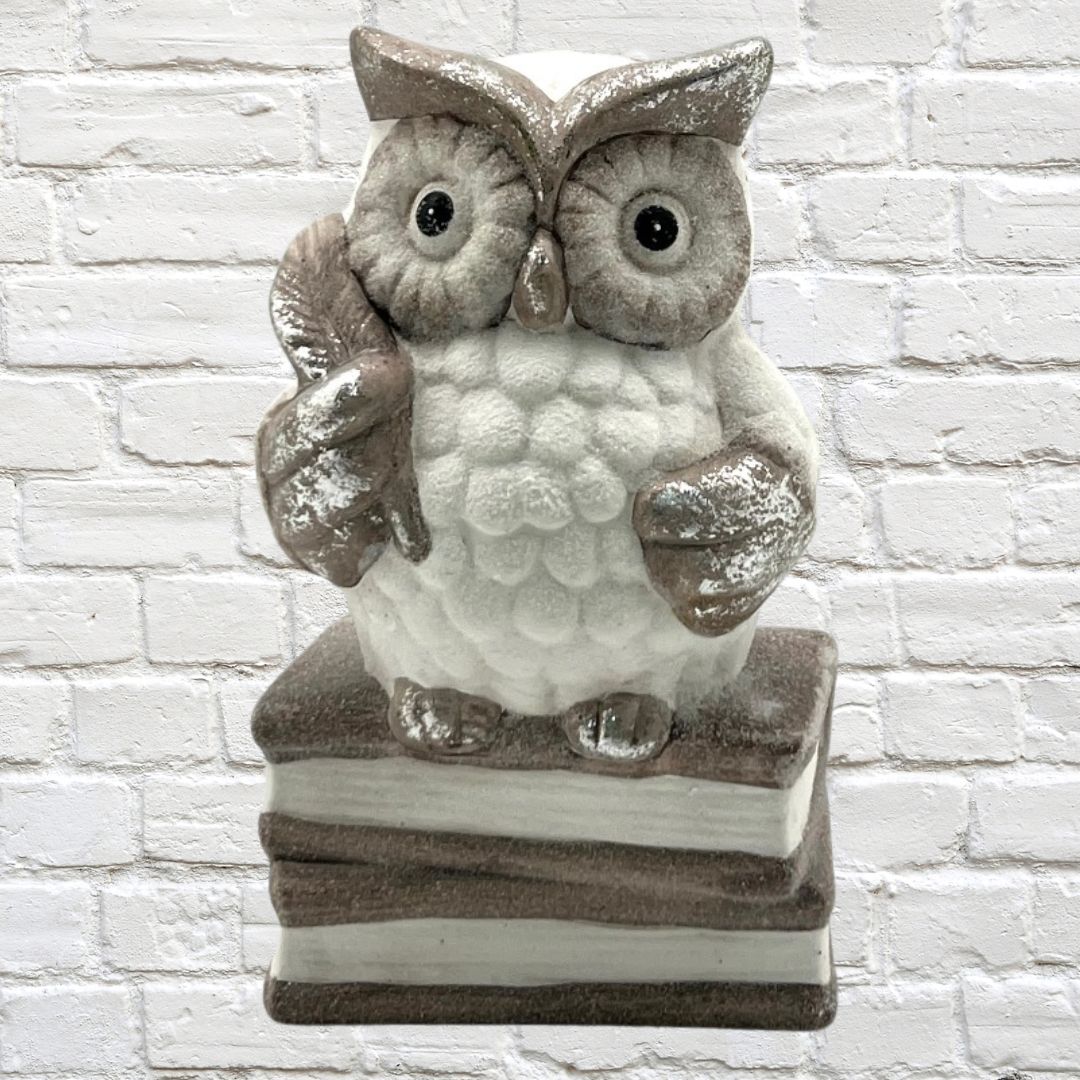 Professor Owl on Books Terracotta/Magnesia 10x15cm