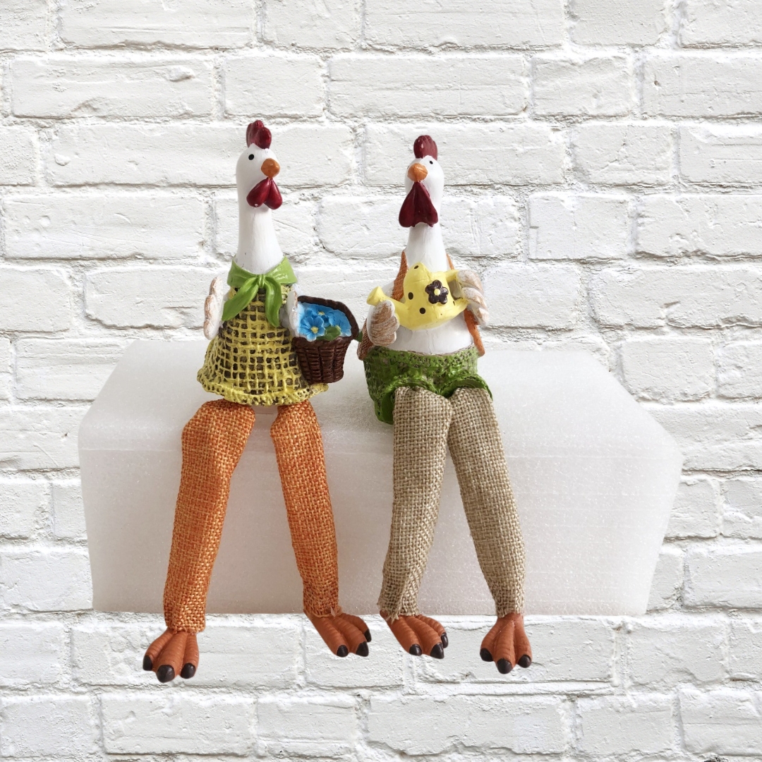 Rooster Sitter Chuck and Dolly Polyresin