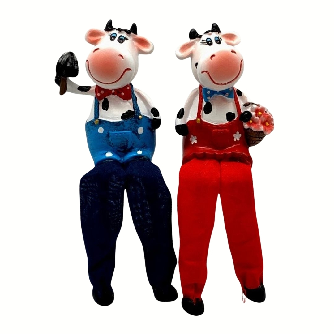 Sitters – Cows Shelf Sitters Red and Blue Clothes – Polyresin 2 Assorted