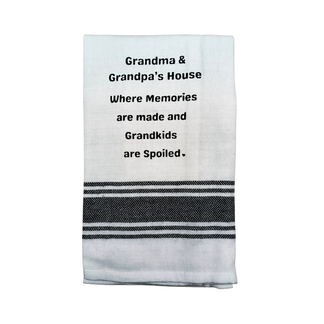 Tea Towel – Grandma and Grandpa’s House Where Memories are Made and Grandkids are Spoiled (100% Indian Cotton) 40x70cm