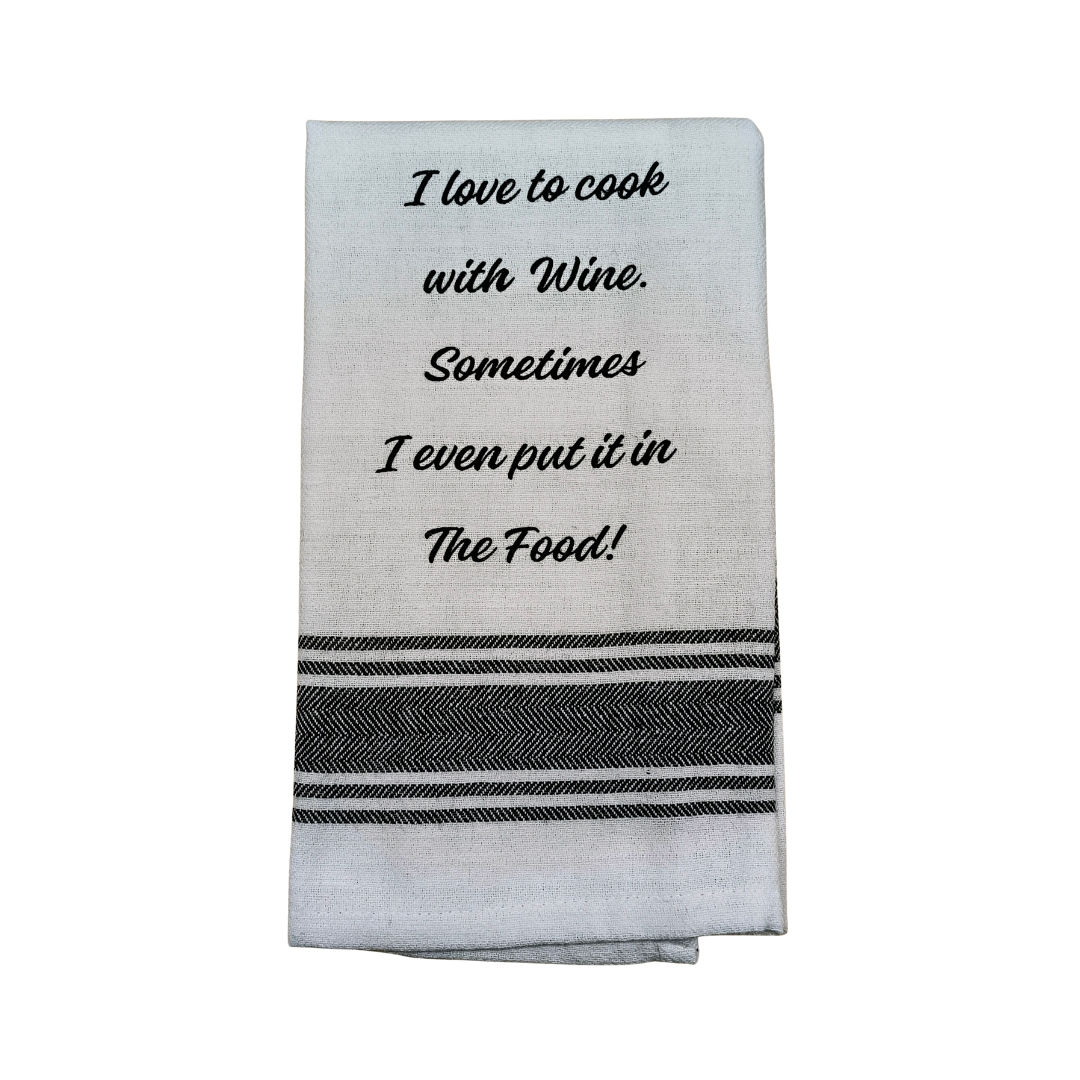 Tea Towel – I Love to Cook With Wine. Sometimes I Even Put It in the Food (100% Indian Cotton) 40x70cm