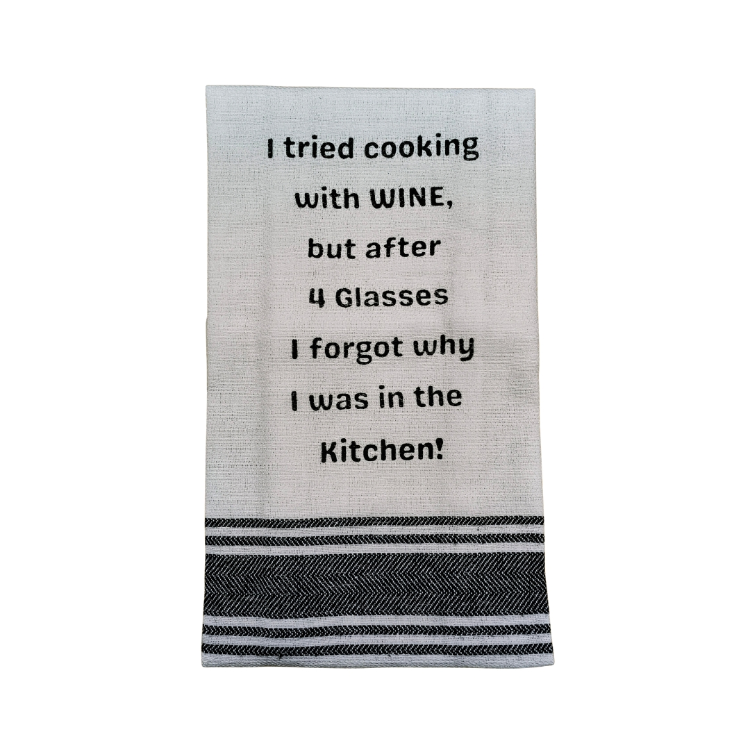 Tea Towel – I Tried Cooking with Wine, But After 4 Glasses I Forgot Why I Was In the Kitchen (100% Indian Cotton) 40x70cm