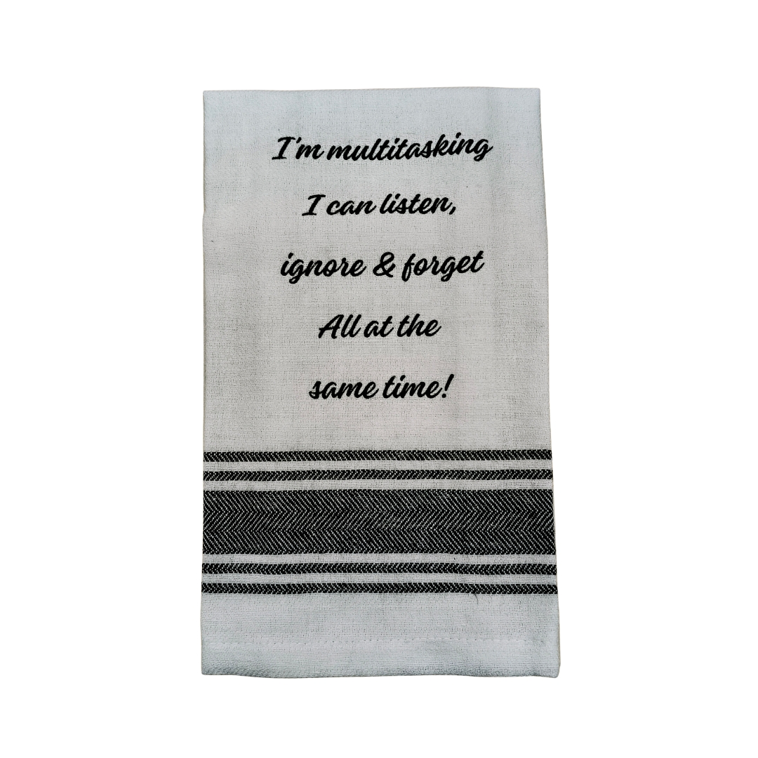 Tea Towel – I’m Multitasking. I Can Listen, Ignore and Forget All at the Same Time (100% Indian Cotton) 40x70cm