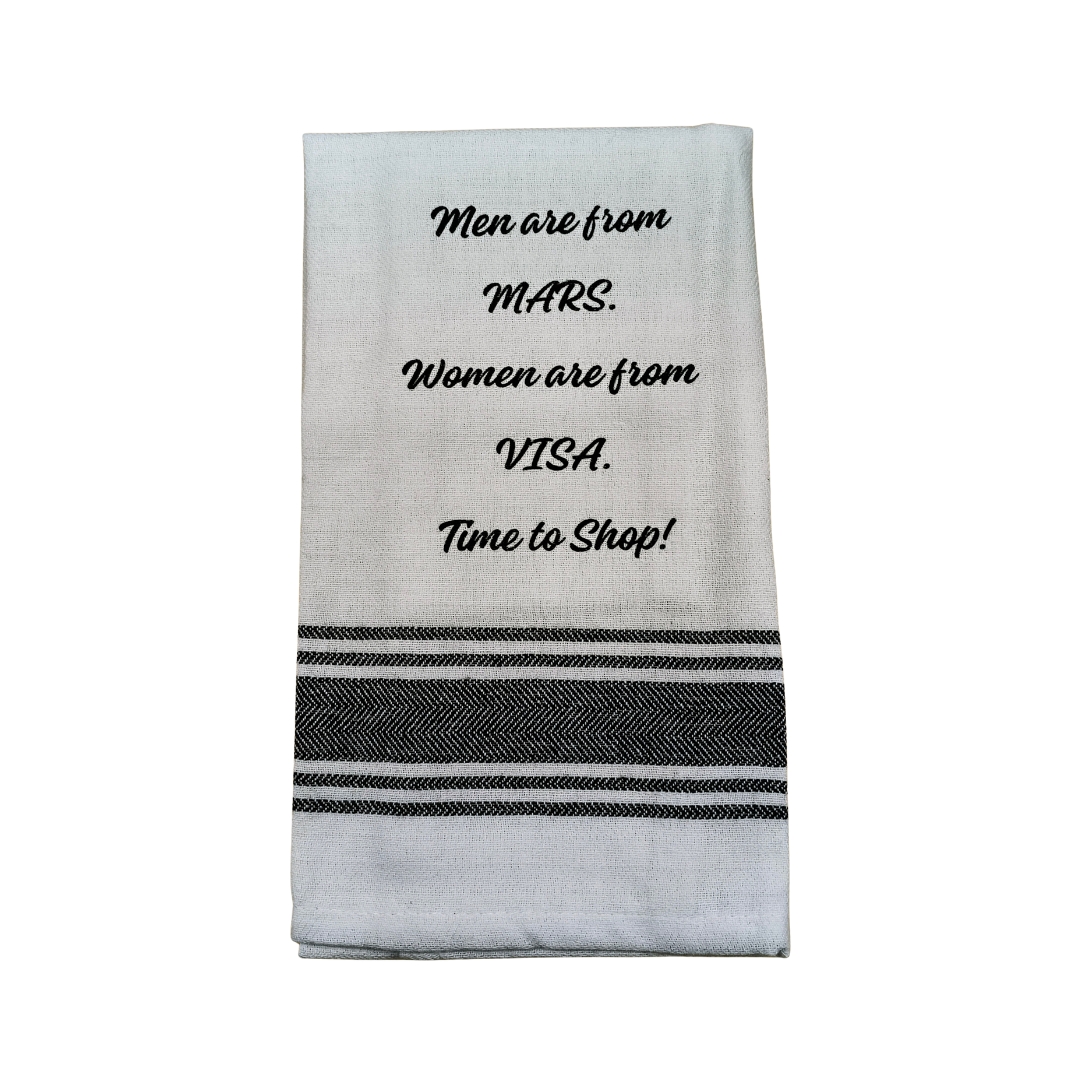 Tea Towel – Men Are From Mars Women Are From Visa. Time to Shop (100% Indian Cotton) 40x70cm