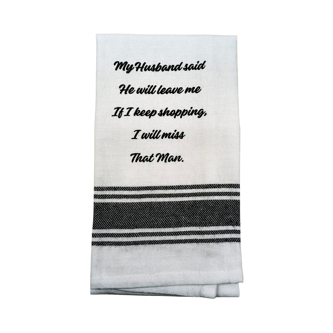 Tea Towel – My Husband Said He Will Leave Me If I Keep Shopping. I Will Miss That Man (100% Indian Cotton) 40x70cm