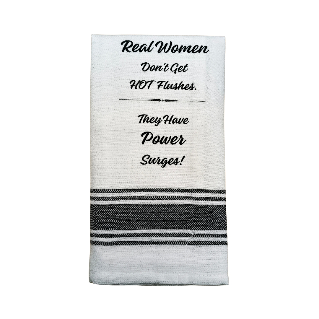 Tea Towel – Real Women Don’t have Hot Flushes. They Have Power Surges (100% Indian Cotton) 40x70cm
