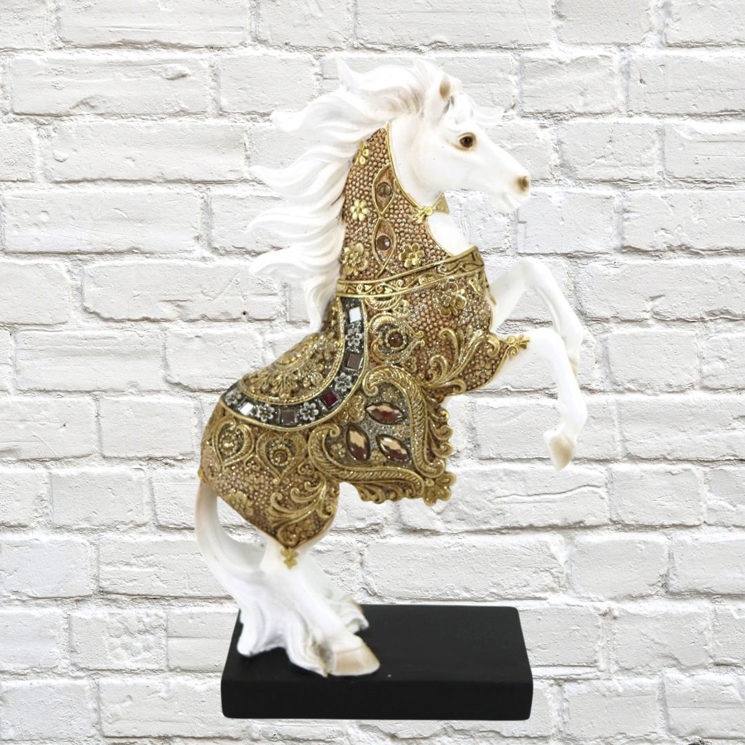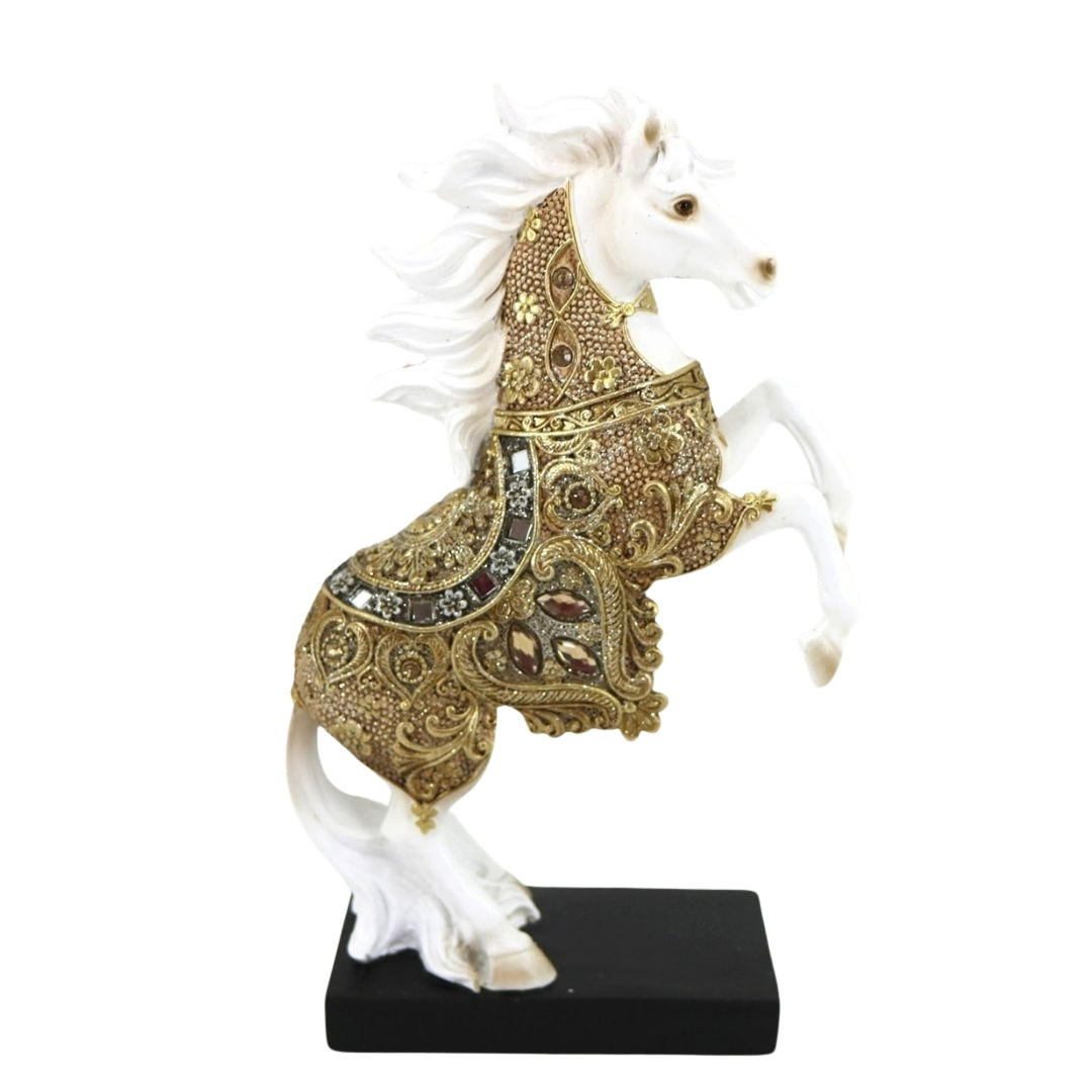 Vancouva Horse Rearing with Golden Jewelled Blanket Polyresin 16×27 cm